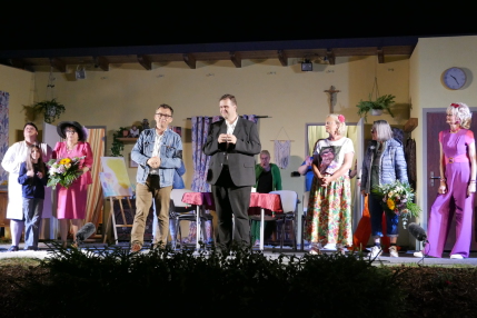 Die Theaterspieler mit Regisseurin und Soufleusse nach der 3. Aufführung